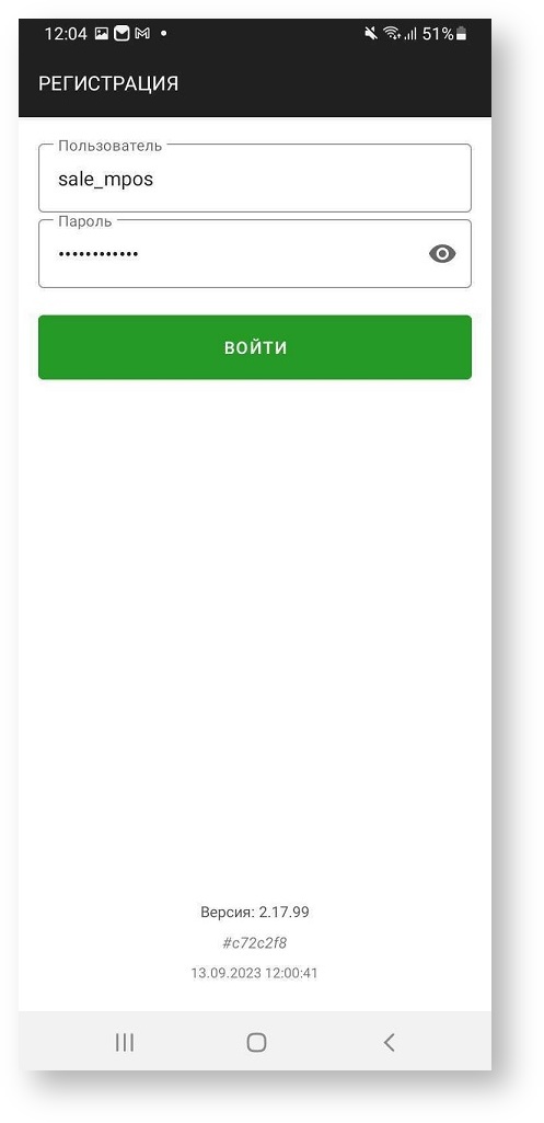 При запуске приложения Assist mPOS необходимо подтвердить свои права на проведение платежей в приложении. Для этого используются наименование учетной записи пользователя и пароль, выданные администратором системы.