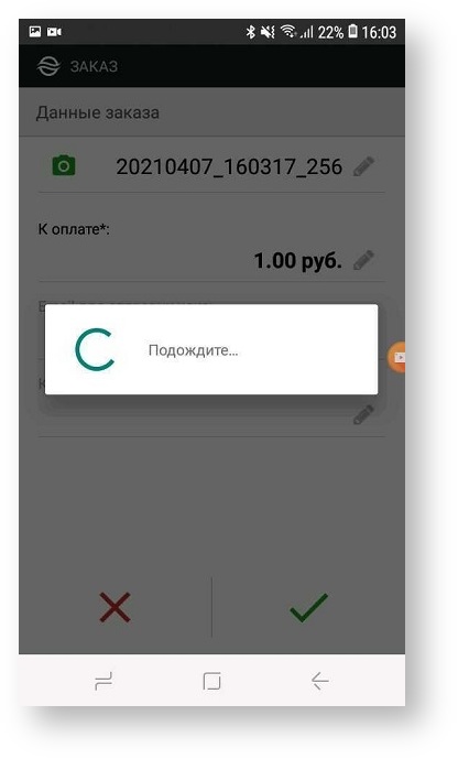 Обновление результатов платежа осуществляется автоматически, при этом отображается значок обновления в строке статуса заказа.