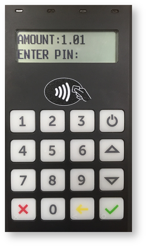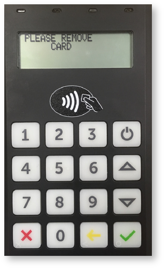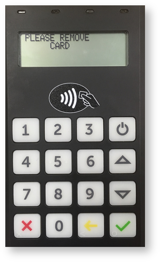 PIN-код вводится на беспроводном терминале. После успешного ввода PIN-кода покупателю предлагается забрать карту: