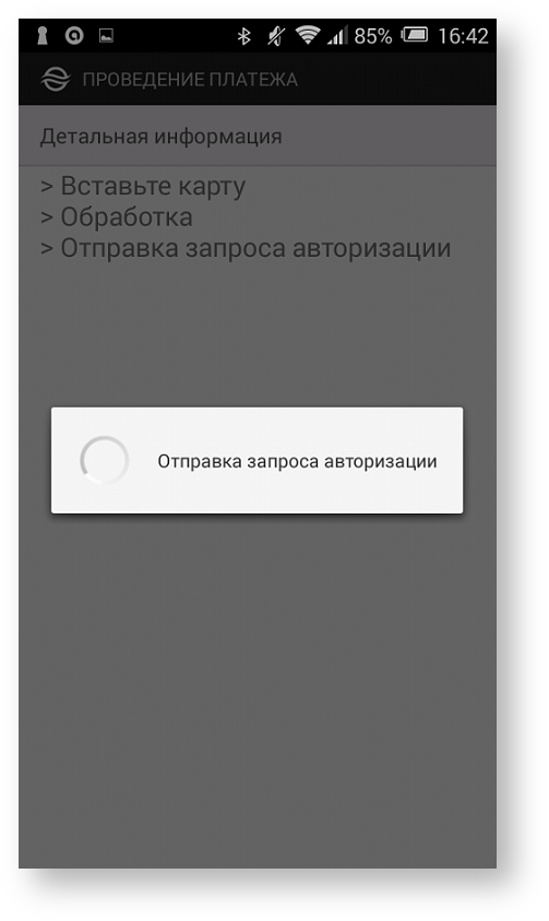 При успешном подключении беспроводного терминала сразу же начинается процесс оплаты.