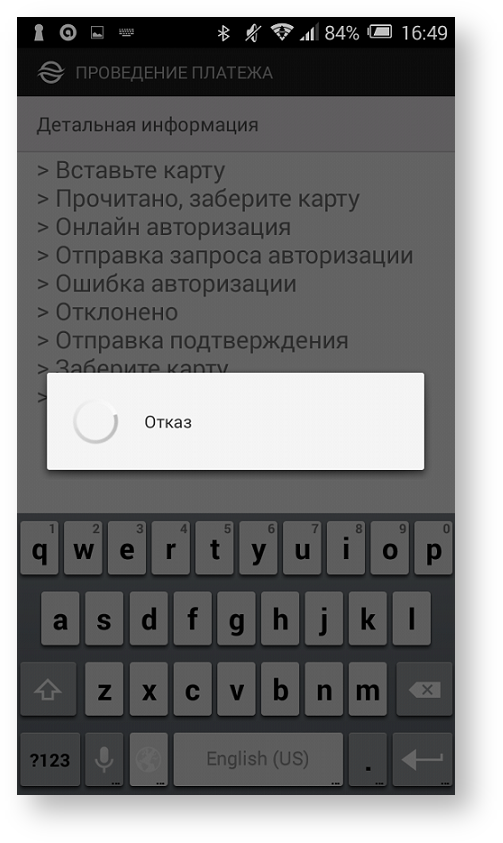 Далее открывается результирующий экран платежа, в котором указана причина неуспешной авторизации:
