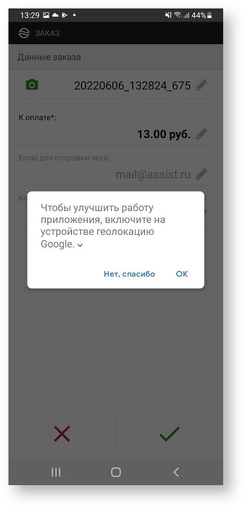 Прием платежей наличными позволяет использовать приложение Assist mPOS и без подключения к интернету. В этом случае после подключения к интернету данные для фискализации автоматически отправятся в АПК Ассист, а чек по электронной почте - покупателю. При этом на экране смартфона отображается сообщение "Фискальный документ для заказа №… передан в Ассист". Проверить данные чека по конкретному заказу можно в ЛК АПК Ассист.