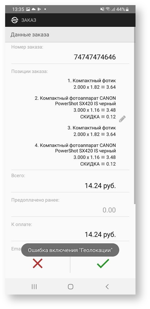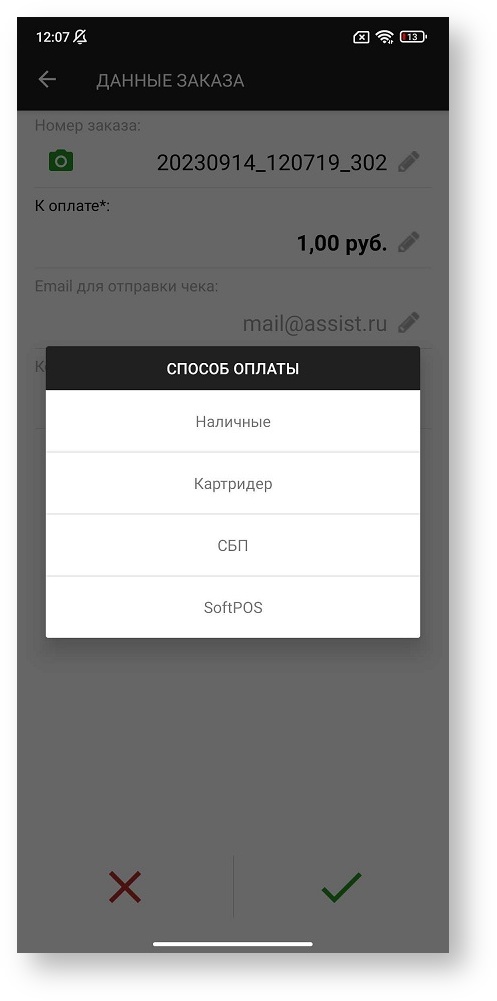 Оплата заказа c использованием мобильного приложения SoftPOS