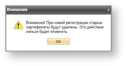 Если же по каким-либо причинам необходима повторная регистрация в НСПК, то следует заново отметить чек-бокс "Зарегистрировать магазин в НСПК" перед загрузкой запроса на сертификат с помощью кнопки «Загрузить CSR», в этом случае выдается специальное предупреждение: