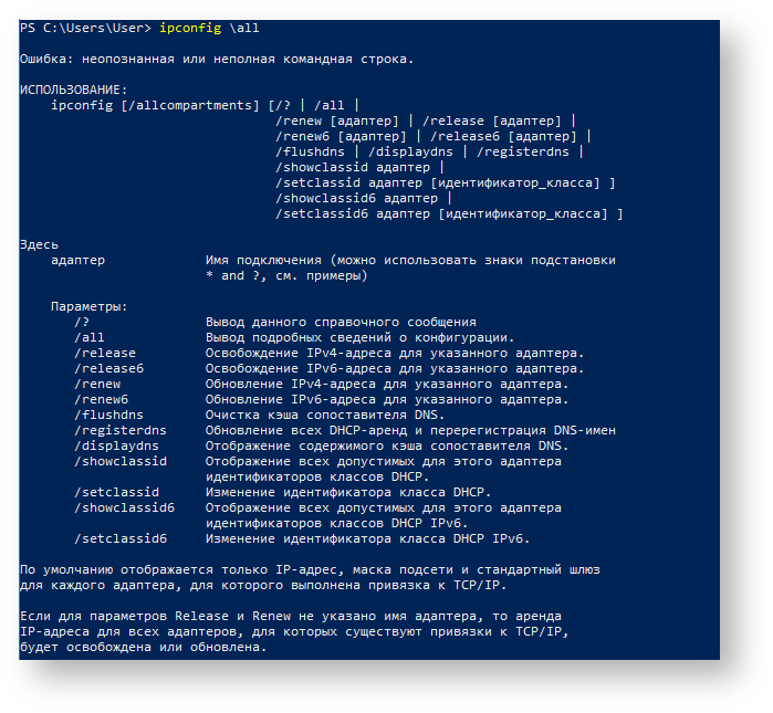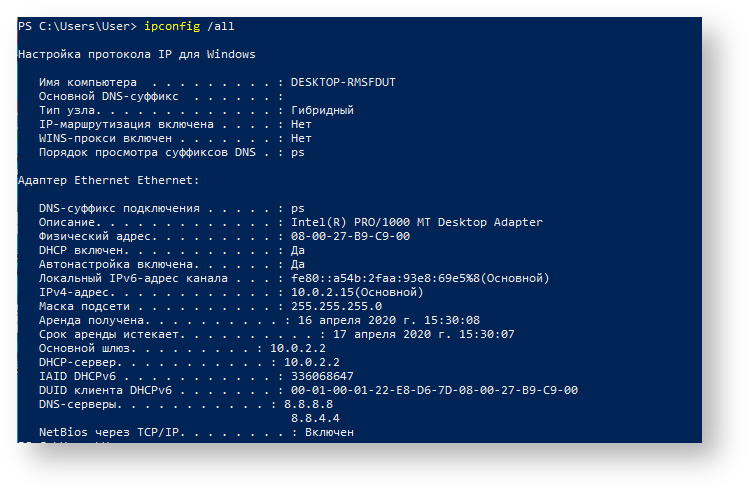 Проверить текущие настройки сетевых интерфейсов можно с помощью команды в Powershell: