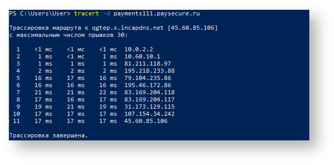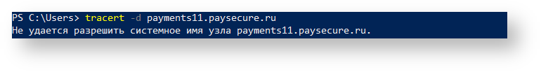 Для определения маршрута, то есть пути прохождения пакетов до сервера payments111.paysecure.ru, используется команда в Powershell: