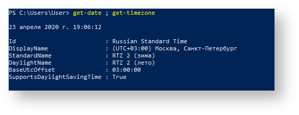 Вывести текущую дату и время, а также часовой пояс в системе можно с помощью команды в Powershell: