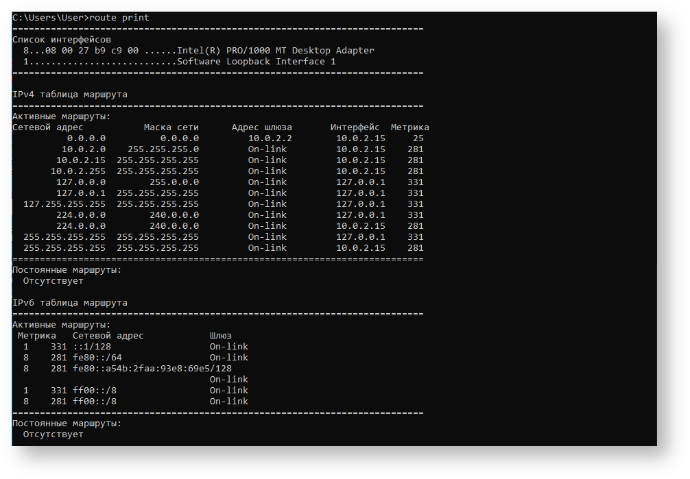 Вывести на экран все содержимое таблицы IP-маршрутизации можно с помощью команды в командной строке (cmd):