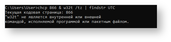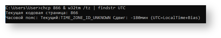 Вывести информацию о часовом поясе в системе можно с помощью команды в командной строке (cmd):