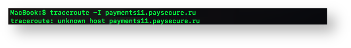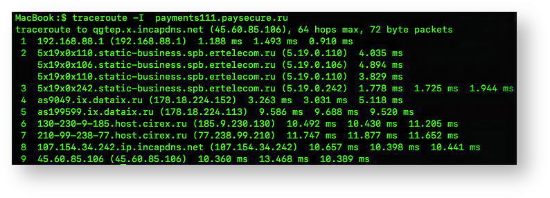 Для определения маршрута, то есть пути прохождения пакетов до сервера payments111.paysecure.ru, используется команда в терминале: