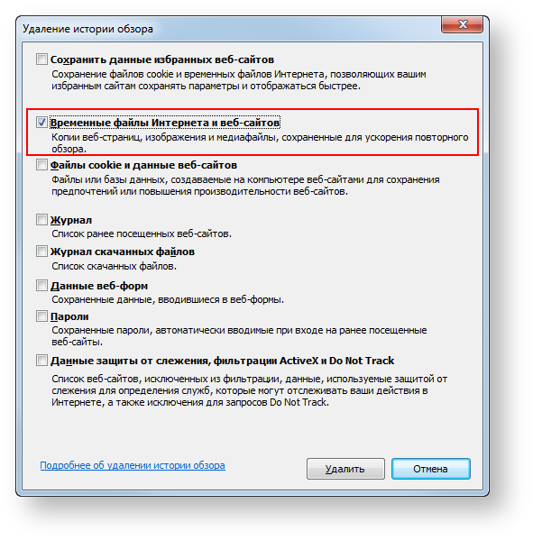 - включить опцию Кэшированные данные и файлы, убедиться, что остальные опции отключены.