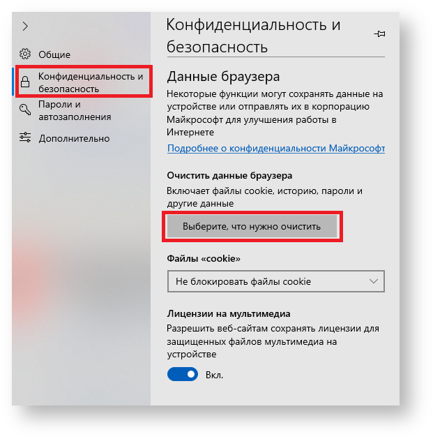 - в подразделе Очистить данные браузера нажать кнопку Выберите, что нужно очистить;
