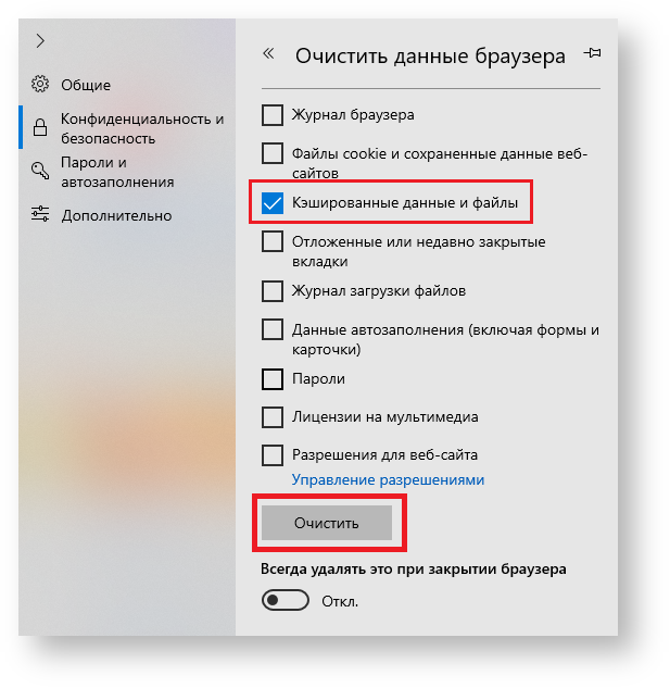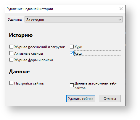Для очистки кэша браузера нужно выполнить следующие действия: