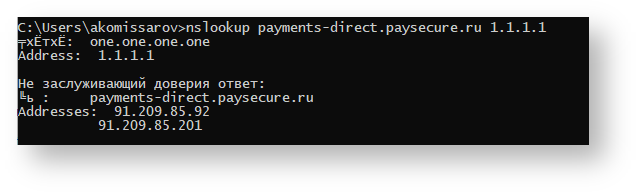 nslookup payments-direct.paysecure.ru 1.1.1.1