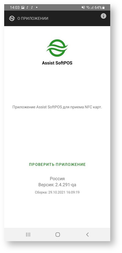 При запуске приложения Assist SoftPOS зарегистрированному ранее пользователю необходимо подтвердить свои права на проведение оплат с помощью приложения. Для этого предлагается использовать отпечаток пальца.
