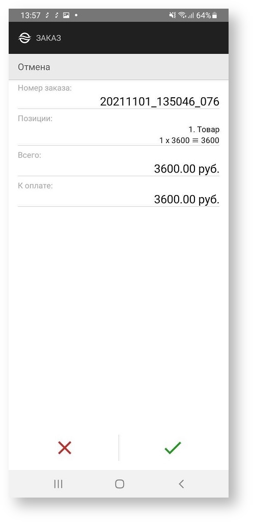 В приложении Assist SoftPOS имеется возможность провести отмену проведенного платежа. Отмена заказа начинается с получения номера отменяемого заказа от приложения Assist mPOS. При этом на экране отображаются данные заказа: