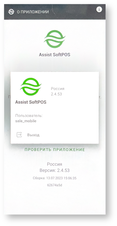 Информацию о приложении можно получить, нажав на значок в правой верхней части экрана. Здесь же отображается информация о авторизованном в данный момент пользователе.